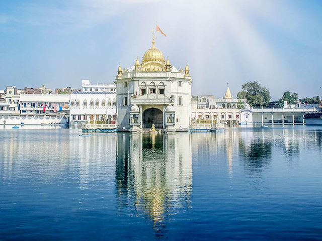 Amritsar is a city in the northwestern Indian state of Punjab, 28 kilometers from the border with Pakistan. At the center of its walled old town, the gilded Golden Temple (Harmandir Sahib) is the holiest gurdwara (religious complex) of the Sikh religion. It’s at the end of a causeway, surrounded by the sacred Amrit Sarovar tank (lake), where pilgrims bathe. Amritsar is the largest and most important city in Punjab and is a major commercial, cultural, and transportation centre. It is also the centre of Sikhism and the site of the Sikhs' principal place of worship—the Harmandir Sahib, or Golden Temple. ... It was annexed to British India in 1849.